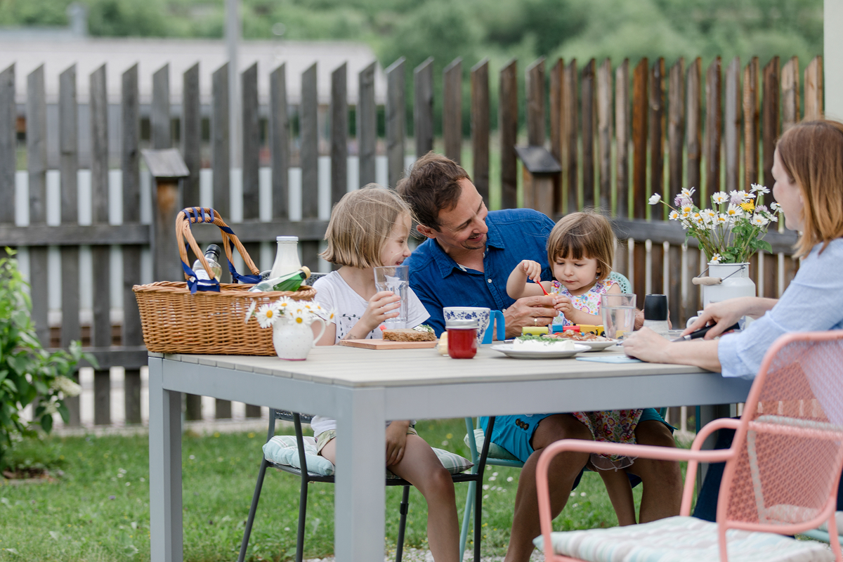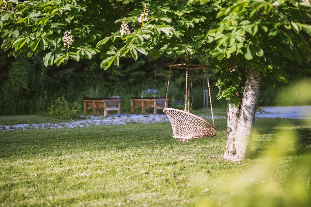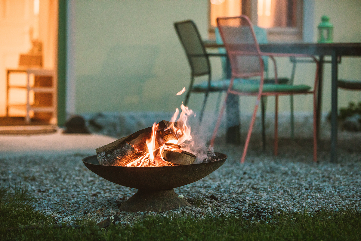 Der hauseigene Garten ist komplett umzäunt und somit kinder- oder hundesicher. Dazu gehört pro Apartment ein eigener Essplatz im Freien mit Feuerstelle und Grillplatz, der Rest des Gartens wird gemeinsam genutzt – wie z.B. der Kräuter- und Gemüsegarten (hier darf geerntet werden!), der Tischtennistisch, das Springfree-Trampolin sowie natürlich die wunderbare Iglu-Sauna.