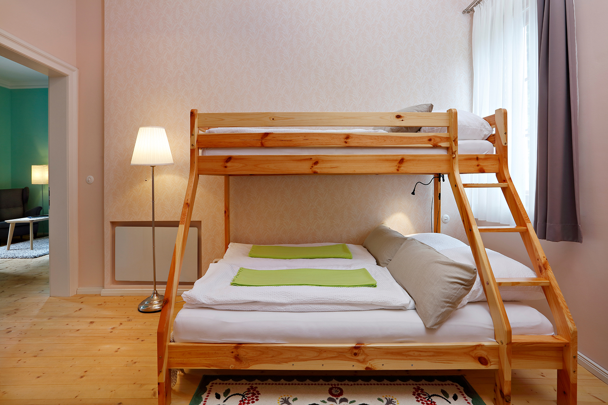 Der “Ötscherbär” ist der Nostalgiezug der Mariazellerbahn, mit Kinderspielwaggon und putzigem Bären-Logo. Bei uns ist das Apartment “Ötscherbär” unsere Familienwohnung, mit Blick auf den Ötscher und extra Kinderzimmer – darum passt der Name! Diese Wohnung ist gemütlich und familiengerecht, natürlich barrierefrei eingerichtet und ideal für Familien mit bis zu 3 Kindern. Mit dem ausziehbaren Tagesbett im Wohnzimmer bringen wir hier aber auch bis zu 6 Personen unter – wenn man ein bissl zusammenrückt…