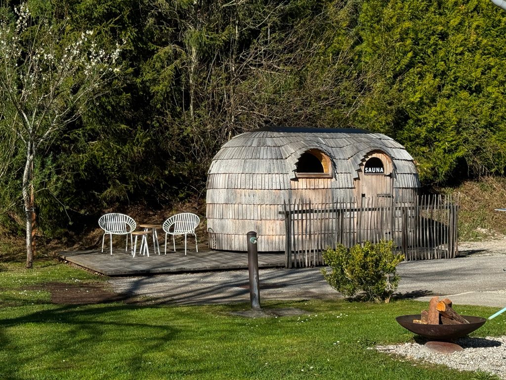 Der ganze Urlaubsbahnhof als Ferienhaus – die beiden Apartments gemeinsam mieten und das ganze Haus samt Garten alleine nutzen. Zwei getrennt begehbare Apartments, ein gemeinsamer Garten mit mehreren Feuerstellen und Grillern, und natürlich die wunderbare Iglu-Sauna.