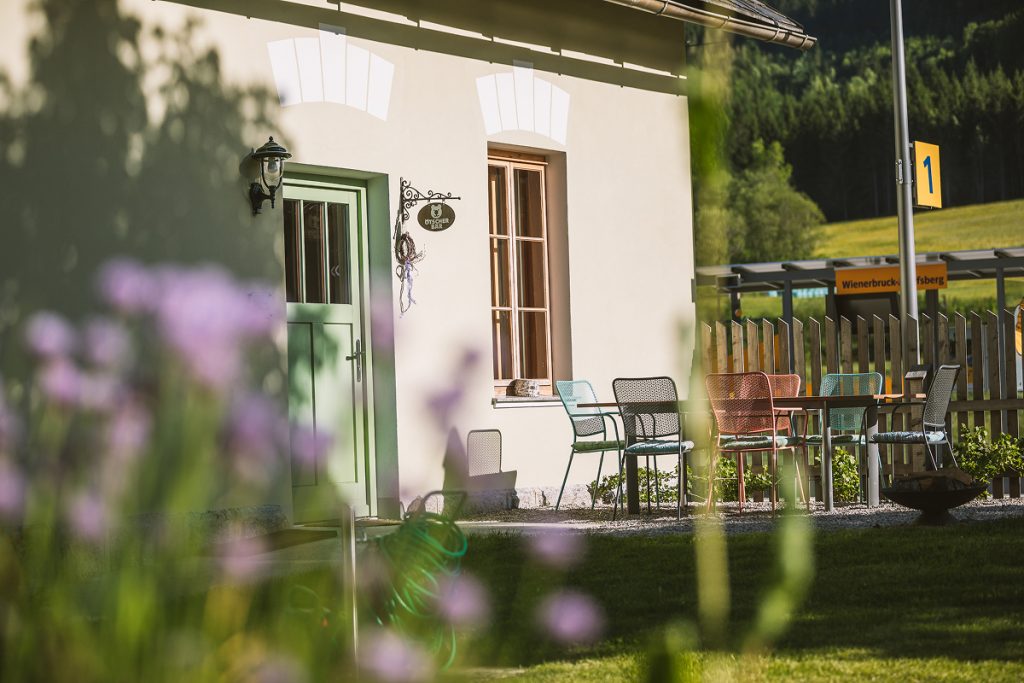 Diese Ferienwohnung bietet Wohnküche, Schlafzimmer und Bad/WC. Im Wohnzimmer befindet sich eine Ausziehcouch. Eingerichtet ist das Apartment in einer Mischung aus Jahrhundertwendemöbeln (aus der Zeit des Baus der Mariazellerbahn) und modernen Details. Barrierefrei, mit Smart-TV und W-LAN.